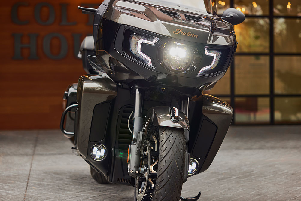 Avec un style imposant et sophistiqué, une finition soignée et des équipements de tourisme haut de gamme, l'Indian Pursuit Elite redéfinit ce que l'on peut attendre d'une moto de voyage américaine.